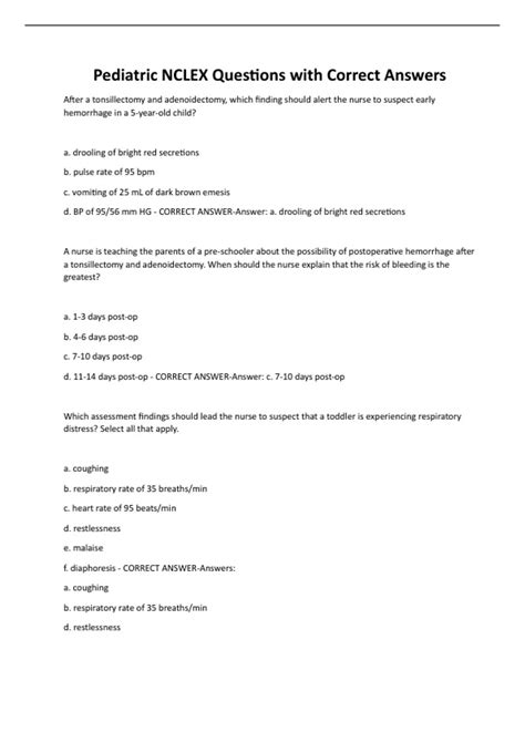 Read Online Pediatric Nclex Questions And Answers Epub By Click Button. Pediatric Nclex Questions And Answers it’s easy to recommend a new book category such as Novel, journal, comic, magazin, ect. You see it and you just know that the designer is also an author and understands the challenges involved with having a good book. You can easy klick for detailing book and you can read it online, even you can download it