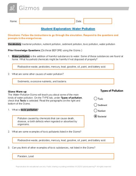 Read Online Water Pollution Gizmo Answers Epub